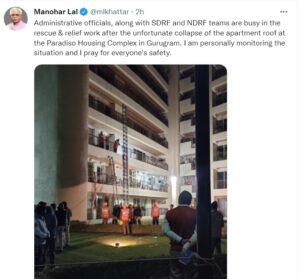 Featured UncategorizedMultistorey apartment roof collapses ,Haryana CM Shri ML Khattar is personally monitoring the rescue operation following the incident by admin Share