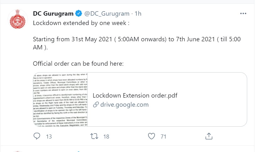 A wise decision by the Haryana Government to extent the lockdown for one more week and try and break the chain to greater degree because one can see that even a little relaxation and people are breaking all norms specially of masking up and we better be prepare for the third wave .